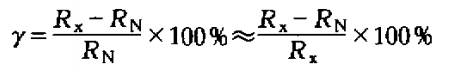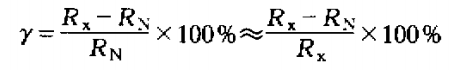 2)用絕對誤差Δ與被檢表讀數值Rx之比的相對誤差: