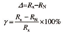 設(shè)標準電阻校準儀的輸出標準電阻量程為RN,數(shù)字多用表的顯示讀書為RX,則被檢表的絕對誤差為: