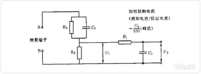 圖1示:加權(quán)接觸電流(感知電流或反應(yīng)電流)測(cè)量網(wǎng)絡(luò)