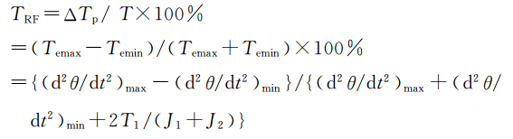 成正比。只要測量出系統(tǒng)的角加速度,就可以測出電動(dòng)機(jī)轉(zhuǎn)矩波動(dòng)值。測量角速度的問題則可以轉(zhuǎn)換成測量系統(tǒng)角位移的問題。也就是說,只要測量出系統(tǒng)在旋轉(zhuǎn)時(shí)的角位移就可以通過計(jì)算求出電動(dòng)機(jī)轉(zhuǎn)矩波動(dòng)值,進(jìn)而計(jì)算出轉(zhuǎn)矩波動(dòng)系數(shù)。由式2可得: